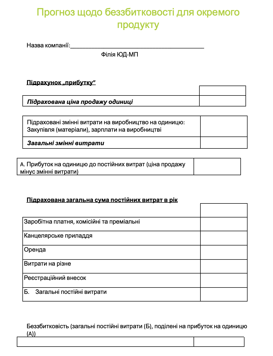 4. Розрахунок беззбитковості